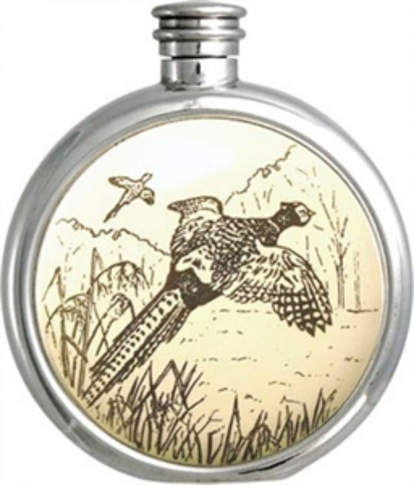 This 6oz hand made in England Hip Flask features an encapsulated Piper Pewter Pheasant scene set behind glass.